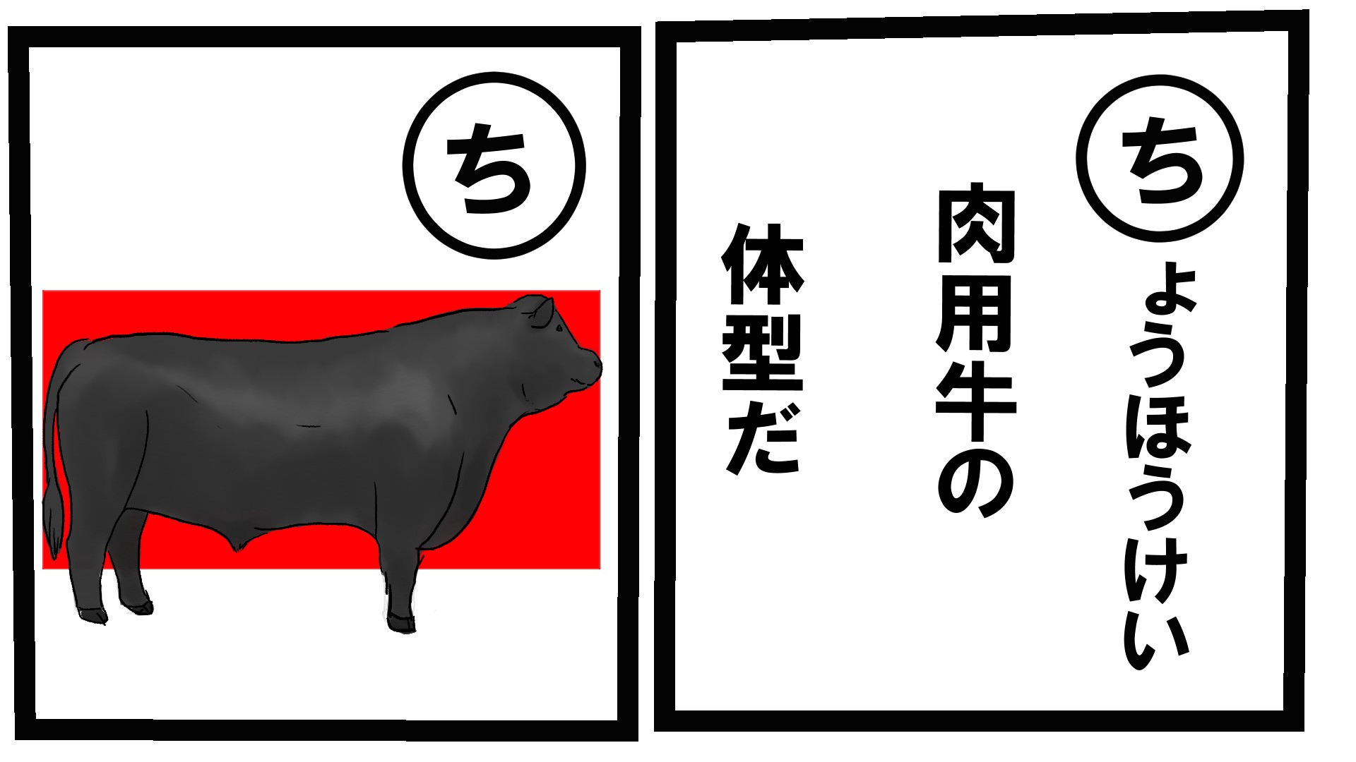 すかまる 牛カルタ ち 肉用牛は長方形の体型が理想 イラストはアバディーンアンガス種 The 肉牛 って感じの体型 牛 牛イラスト 牛カルタ